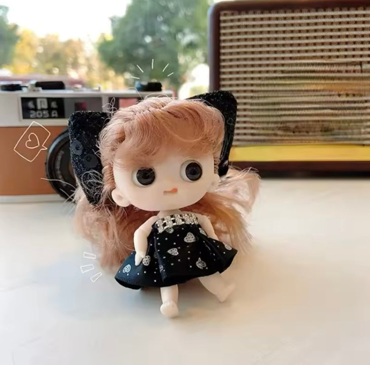 Llavero muñeca love vestido negro elegante con doña para el cabello en la cabeza (J3) M01319