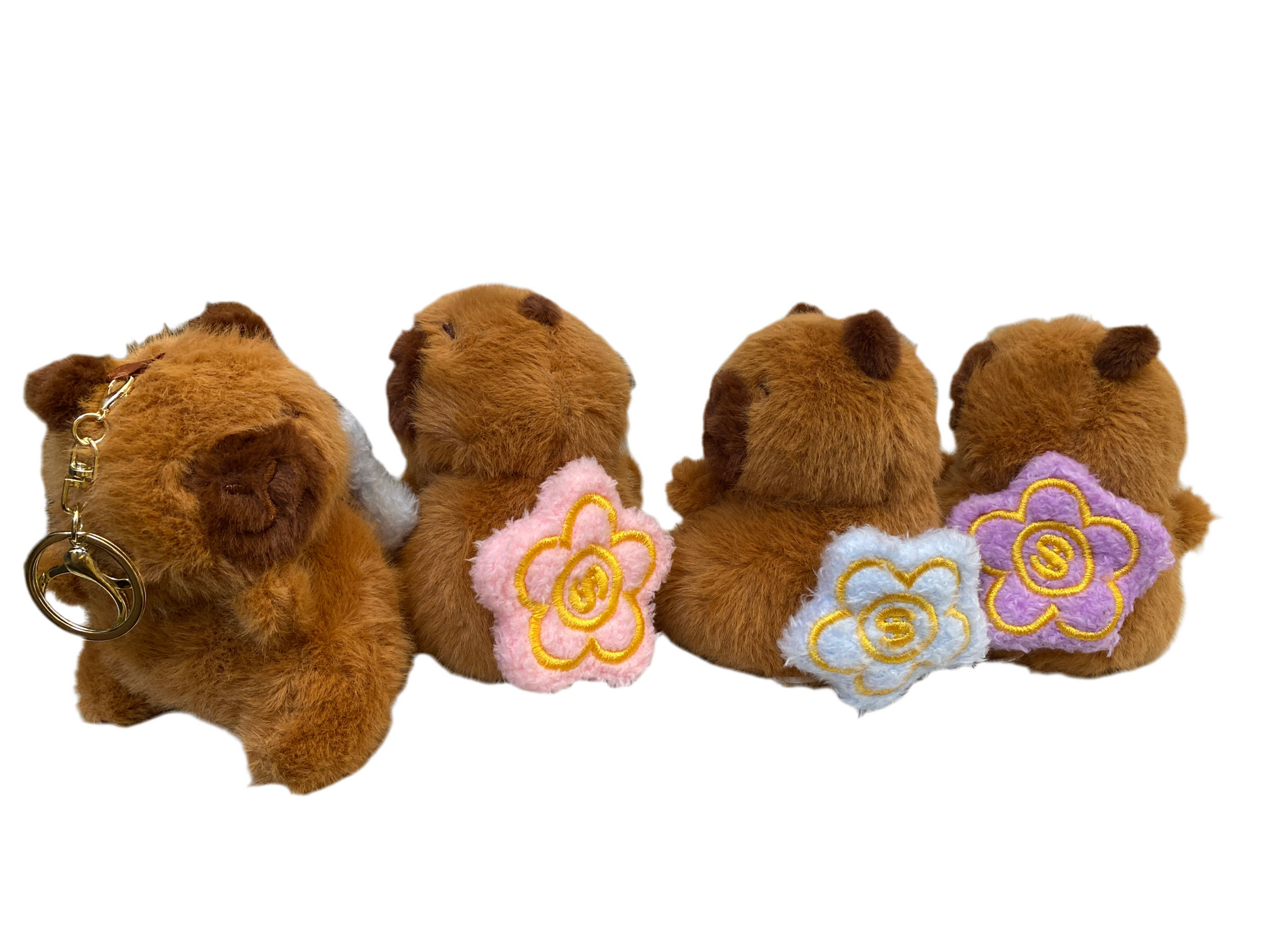 Llavero peluche Capibara de cuerda con flor 🌺 en la espalda modelo R1105