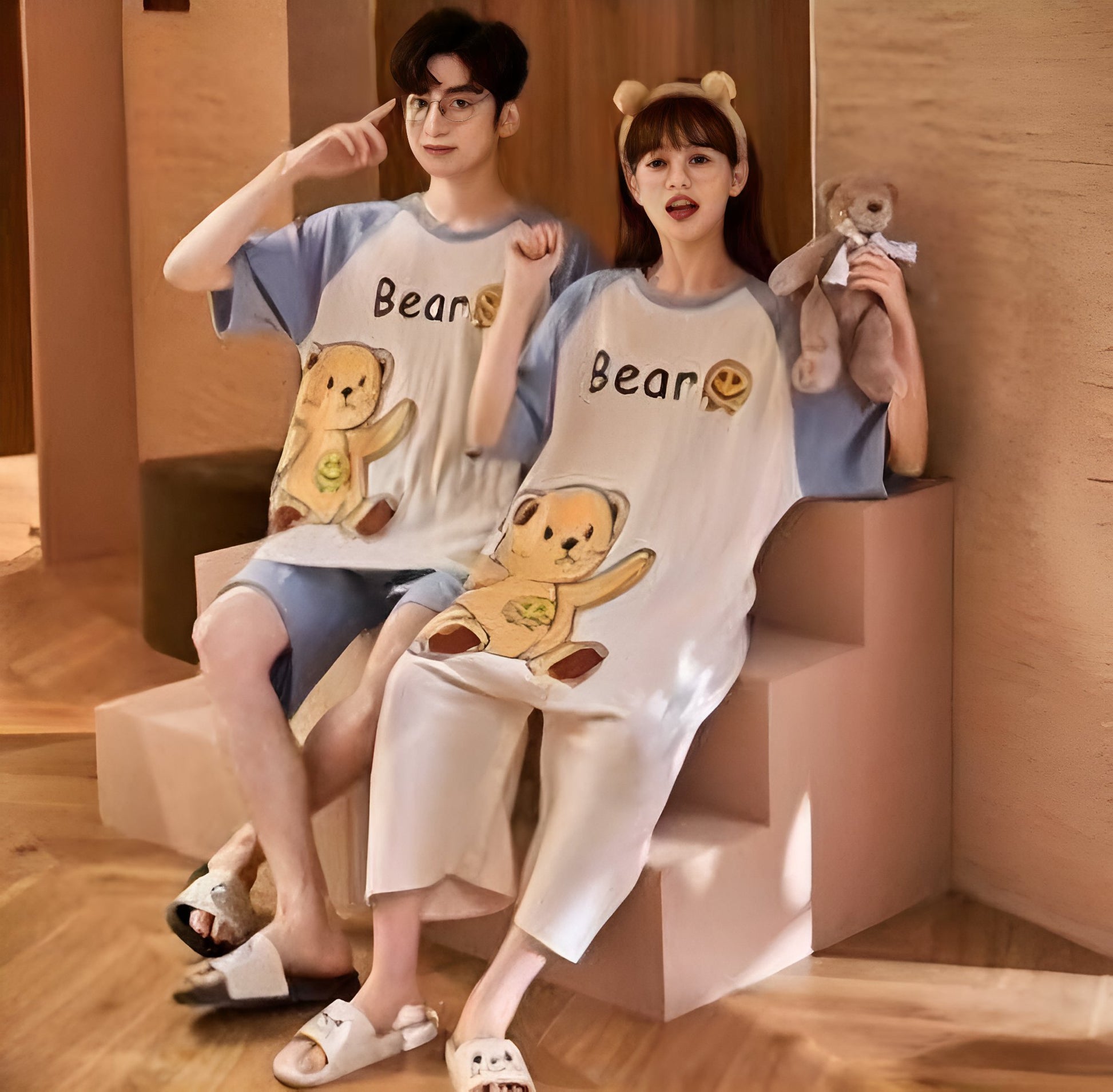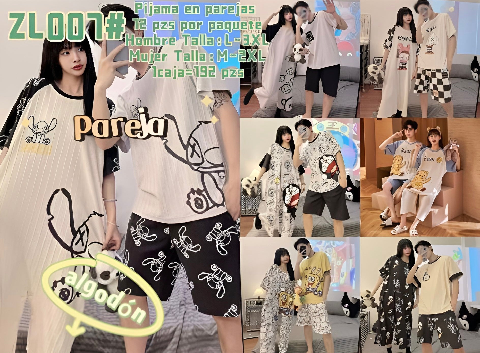Pijamas individual para Pareja Calidad Alta (Hombre: Playera + Short | Mujer: Pijama Jumper) (G6,H6 G1,H1) ZL007 se vende por separado