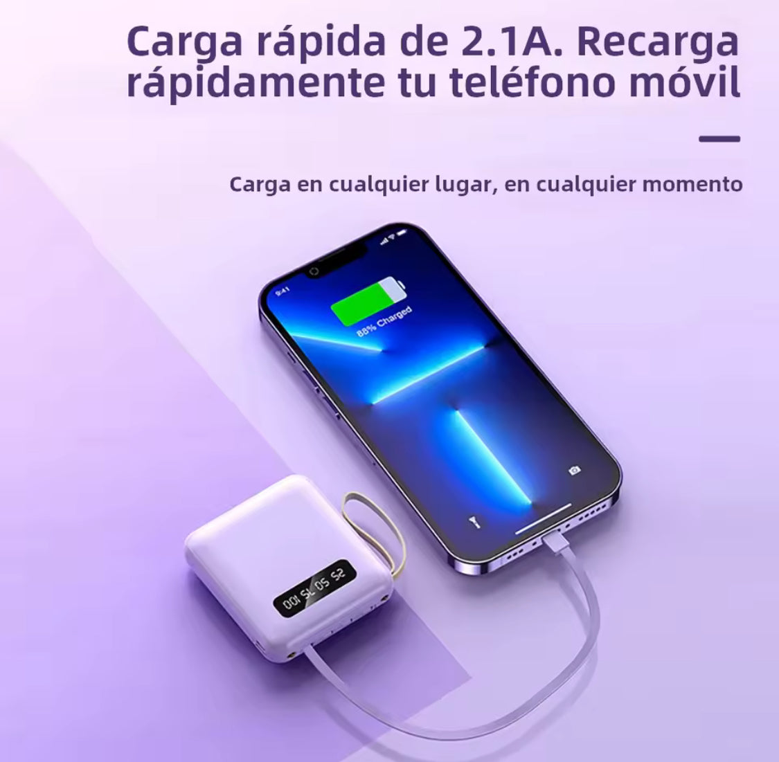 PowerBank Batería portátil con lámpara led y marcador digital para cargar celular con 4 entradas para cargar diferentes dispositivos +10 Diseños Diferentes (B2) LU3834