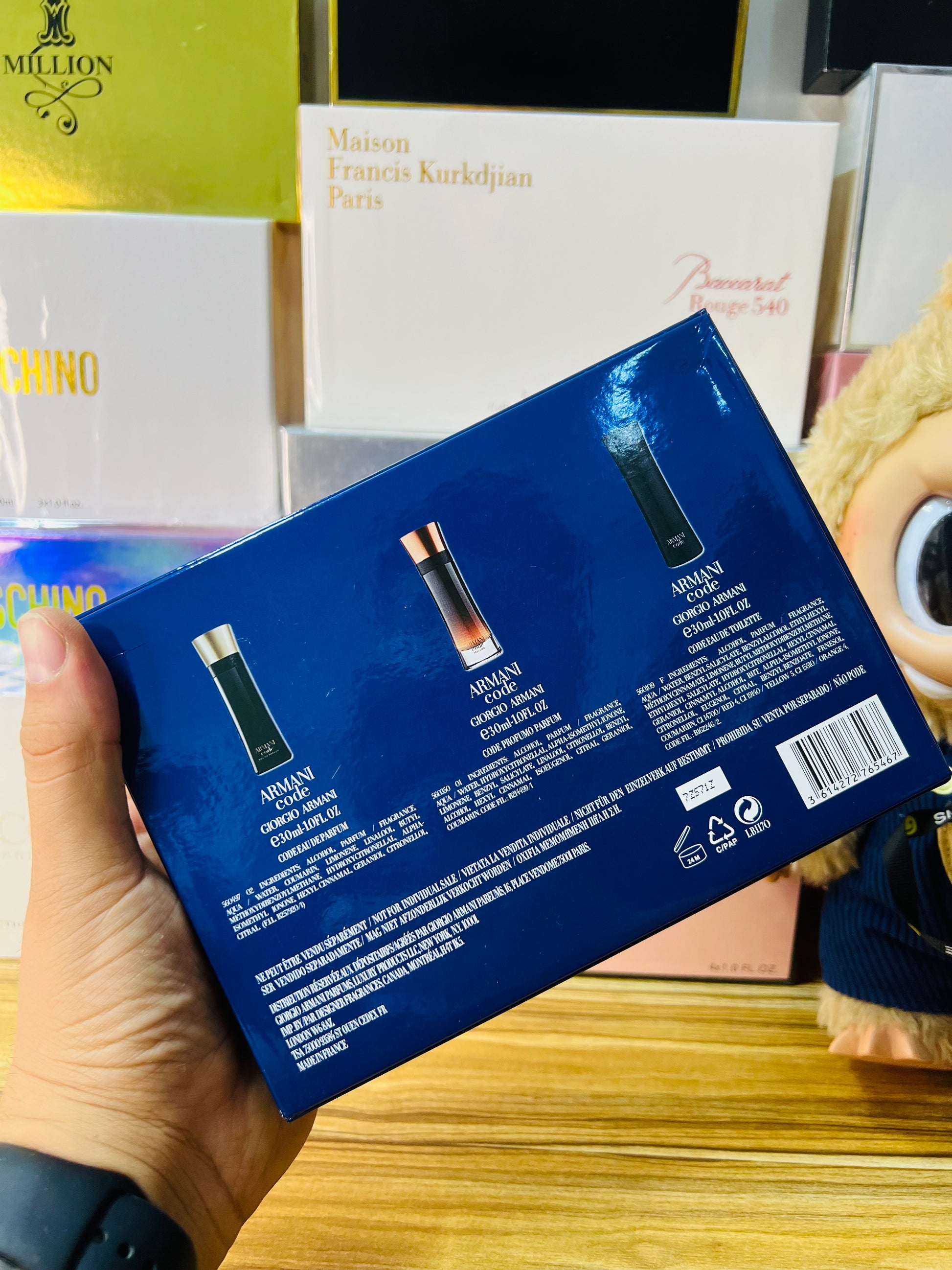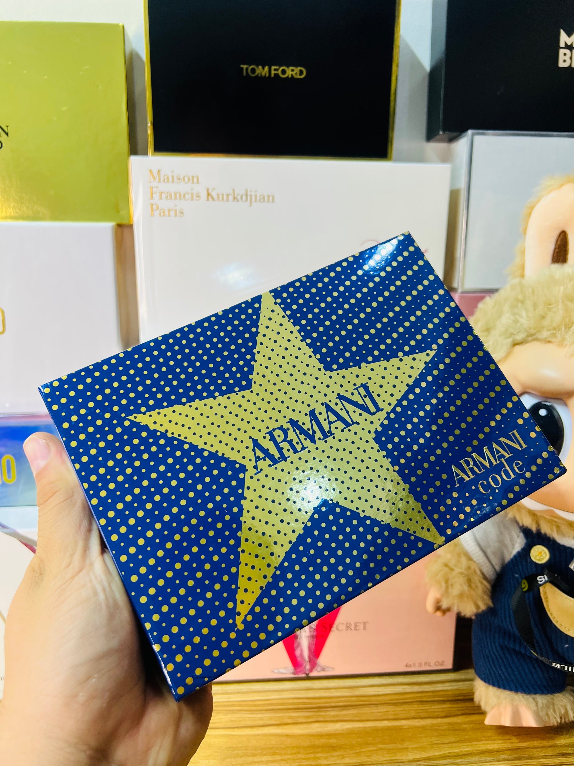 Este set contiene perfumes de la línea Armani Code Parfum de Giorgio Armani, una fragancia masculina amaderada aromática lanzada en 2022.