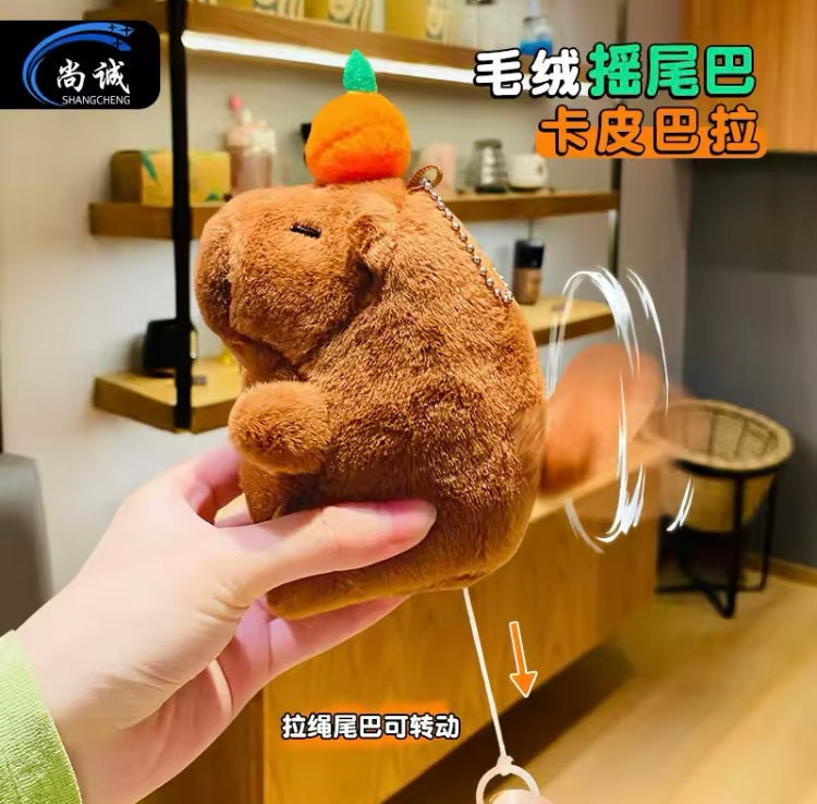 Llavero Capibara con fruta en la cabeza y colita vibratoria de 14cm calidad premium 2002 mr5566